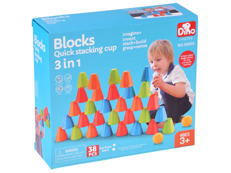Rinkinys taip pat gali būti naudojamas kaip vikrumo žaidimas – sudėdami puodelius į įvairias figūras, vaikai gali treniruoti tikslumą ir greitumą, bandydami juos nuversti, perkelti arba pataikyti į nurodytus taikinius lengvais kamuoliukais. Tokios veiklos lavina rankų ir akių koordinaciją, koncentraciją ir refleksus, žaidimui suteikdamos varžymosi elementą ir papildomą malonumą.