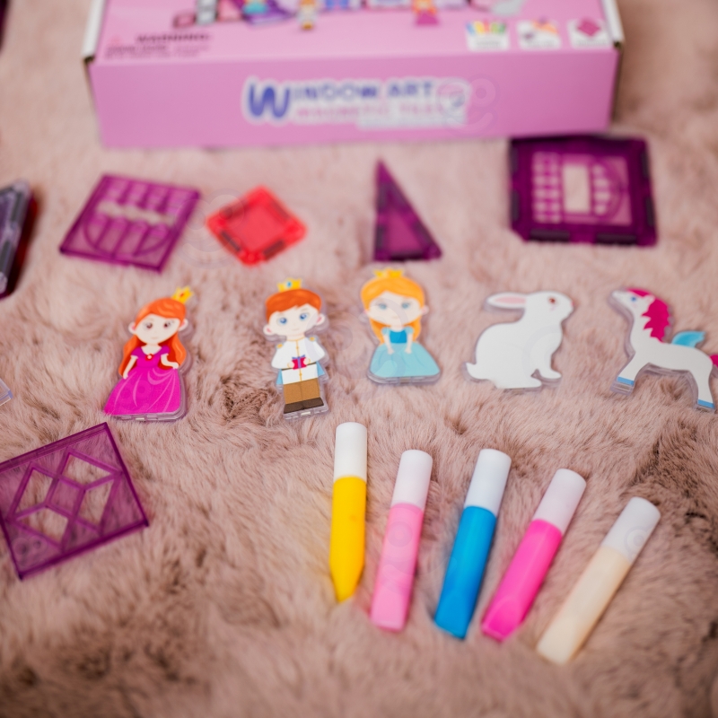 Skatinkite vaiko vaizduotę su magnetinių konstruktorių rinkiniu, sukurtu mažoms mergaitėms, kurios mėgsta princeses, vienaragius ir pasakų šalis. Šis unikalus rinkinys susideda iš 58 tiksliai pagamintų įvairių formų ir funkcijų detalių, kurios visos turi įmontuotus magnetus, leidžiančius greitai, tvirtai ir saugiai sujungti detales. Tai puikus kūrybinio žaidimo ir ugdymo derinys, ugdantis rankų įgūdžius, loginį mąstymą ir erdvinę vaizduotę.