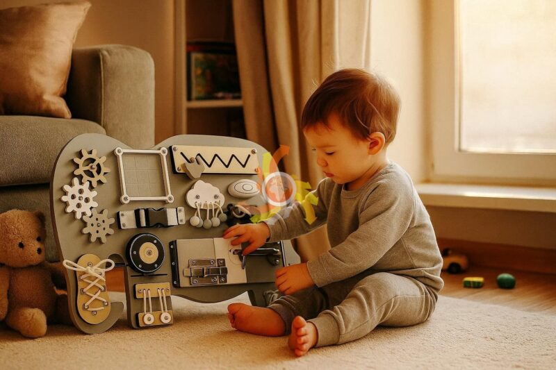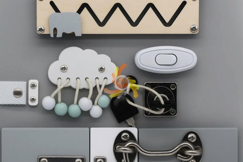 Įrengta įvairiais elementais – spynomis, jungikliais, krumpliais ir raišteliais – ji suteikia vaikams ilgą ir kūrybingą pramogą. Idealiai tinka naudoti namuose ir darželyje.